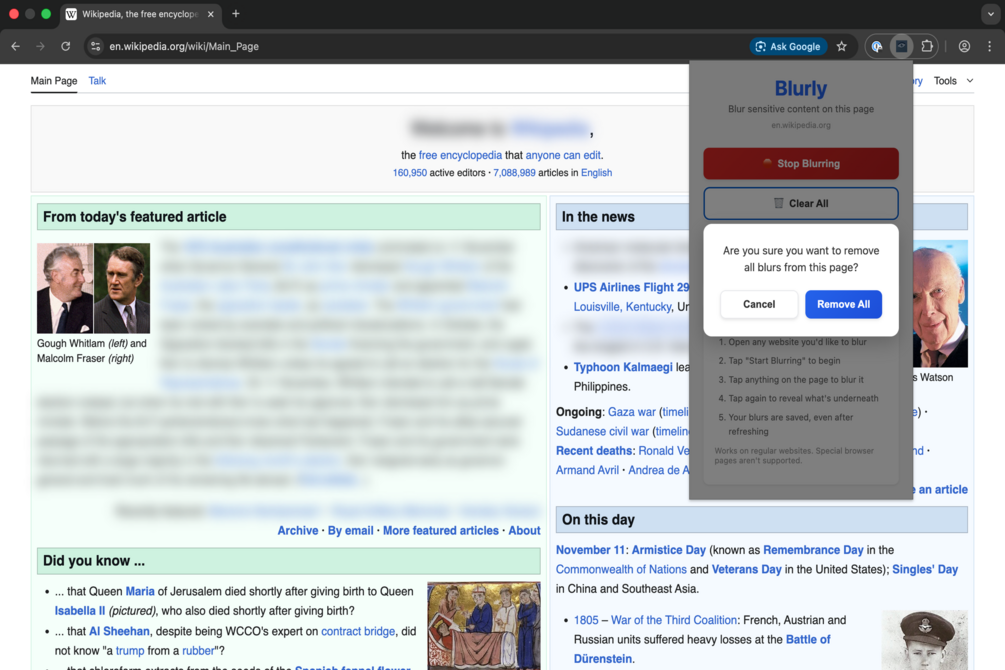 - 🎯 One-Click Blurring: Click on any element to blur it instantly